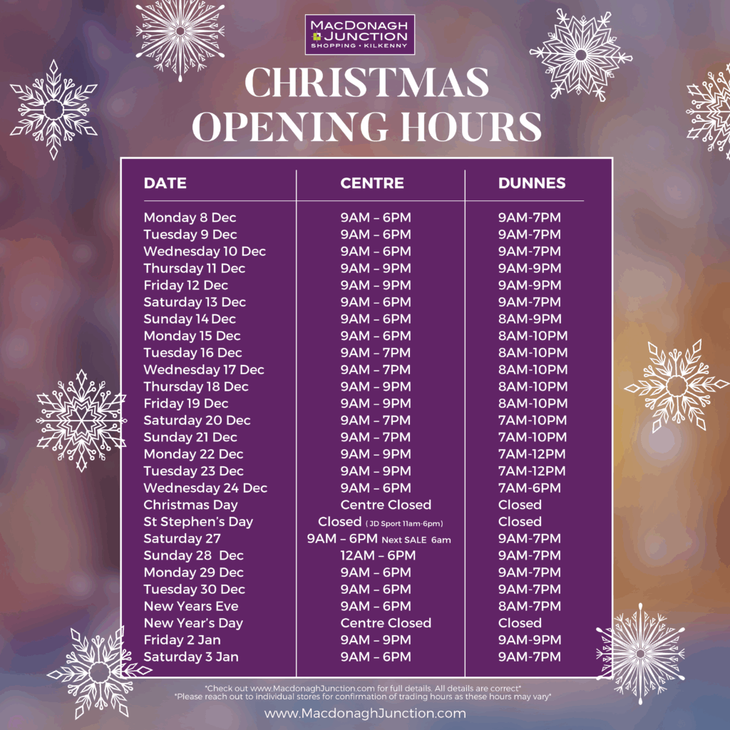 Please Note: Opening hours may vary slightly, please contact stores directly to confirm opening hours. Telephone numbers for each store can be found in the Store Directory.